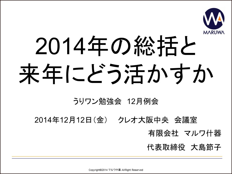 今年もあと1ヶ月半ほど。そろそろ忘年会の段取りをしないといけない時期になってきましたね。私も毎年恒例の忘年会がいくつかありますが、その中の一つ“うりワン勉強会”の忘年会も1ヵ月後に迫ってきました。今年は12月の例会が100回目という節目の会になるので、全員がこの約7年半を振り返って報告をすることになっています。